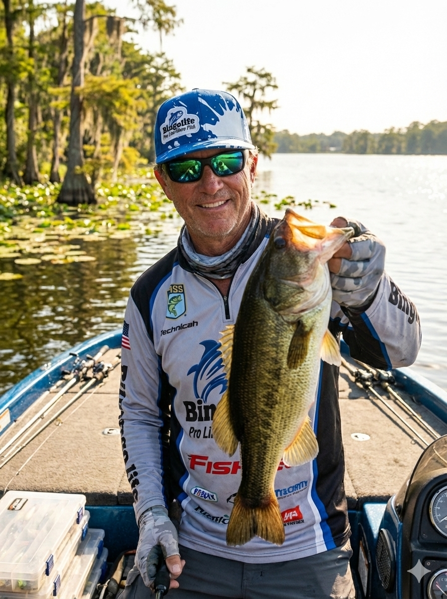 Bingolife Blue and White Bingolife Pro Line More Fish Baseball Style Fishing Cap