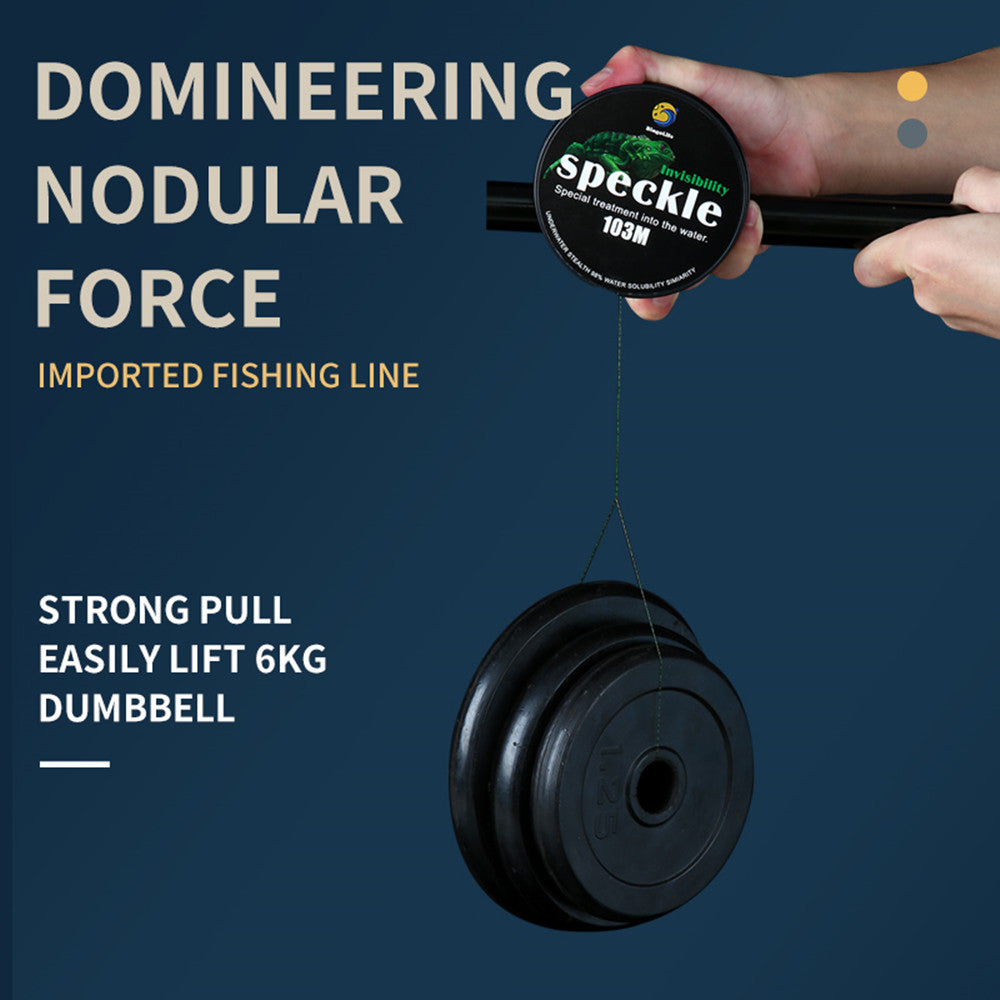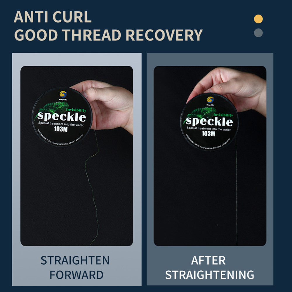 Chameleon on the fishing line, color-changing spotted nylon fishing line. Add quantum optical materials to refract tiny points, simulate underwater floating objects, and become invisible when entering the water. The fishing line presents different colors under different light intensities, which better adapts to the environment. The invisibility effect of fishing line is different under different water quality: