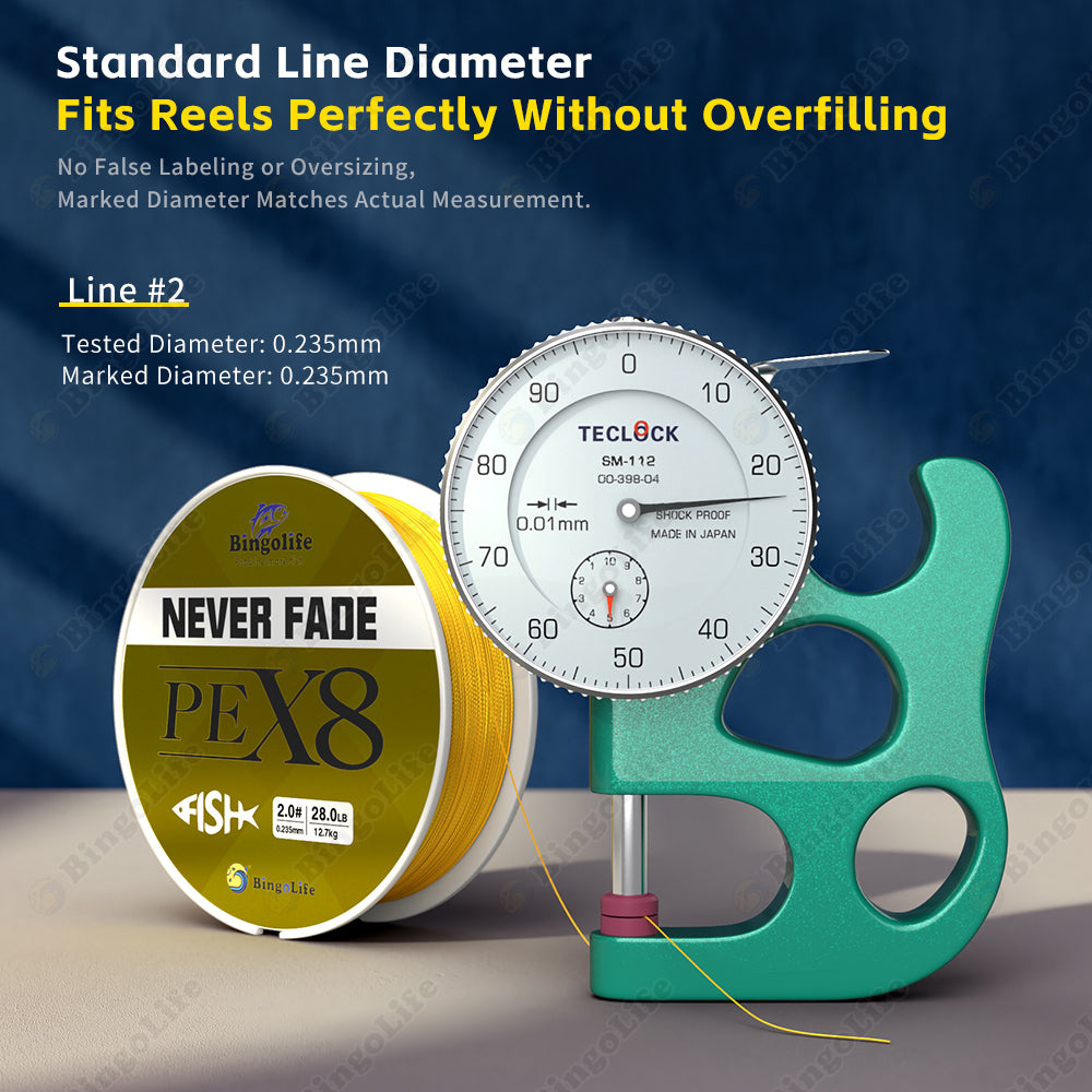 Bingolife Never-Fade PEX8 Braid Line 330 YDS Yellow