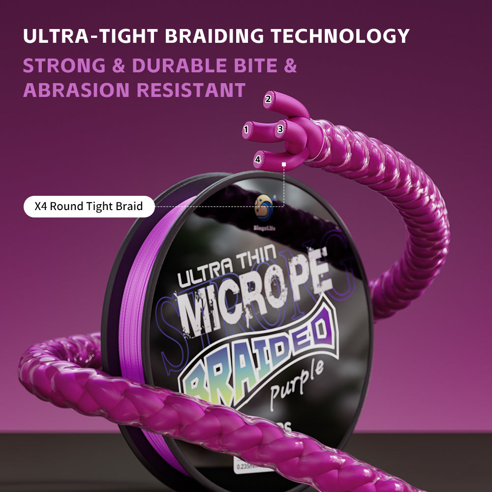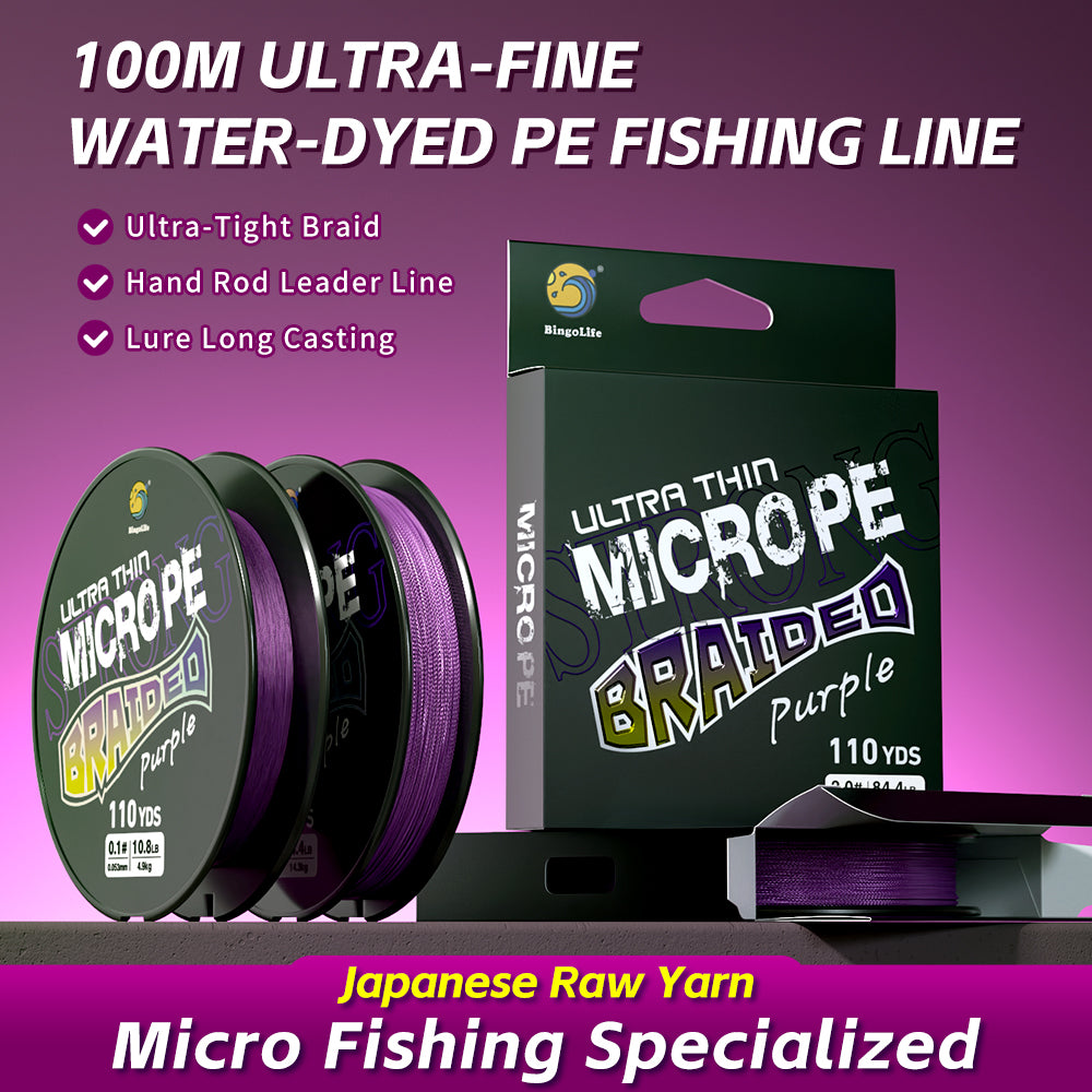 Bingolife Purple Ultra-Thin Fishing Line PEX4 Braided - 100m Premium Micro Thinner Finesse Fishing Line, High Tensile, Micro Fishing Dedicated, Long Cast